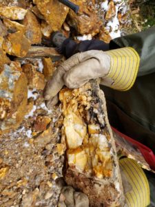 - Analytical results from the 2019 rock sampling program returned gold values of 41.97 g/t Au and 99.59 g/t Au, and a 1m channel sample across the Winslow vein above the adit that graded 14.28 g/t gold with 118 g/t silver, confirming the exceptional values in the Winslow vein. Elevated lead and zinc were also reported.